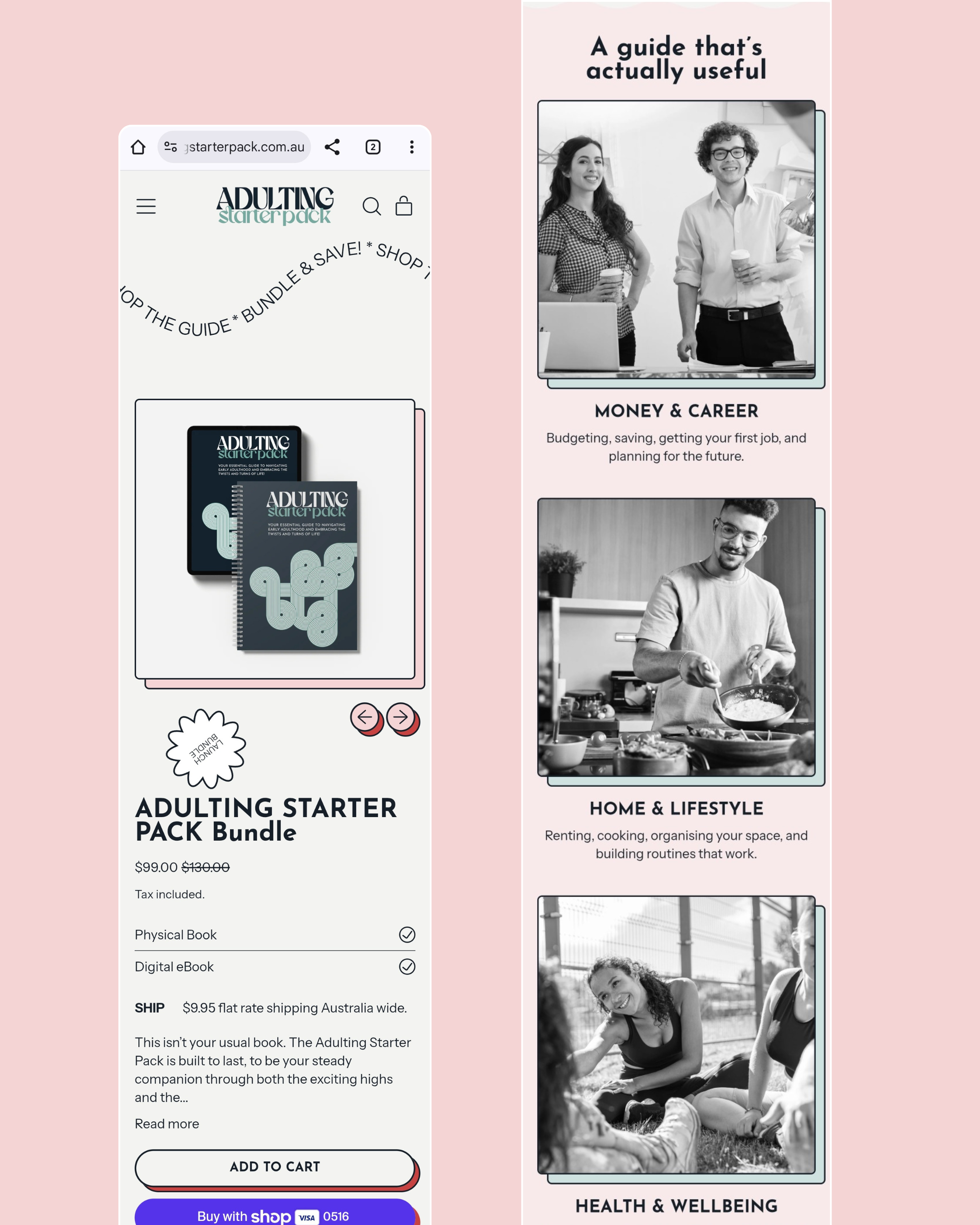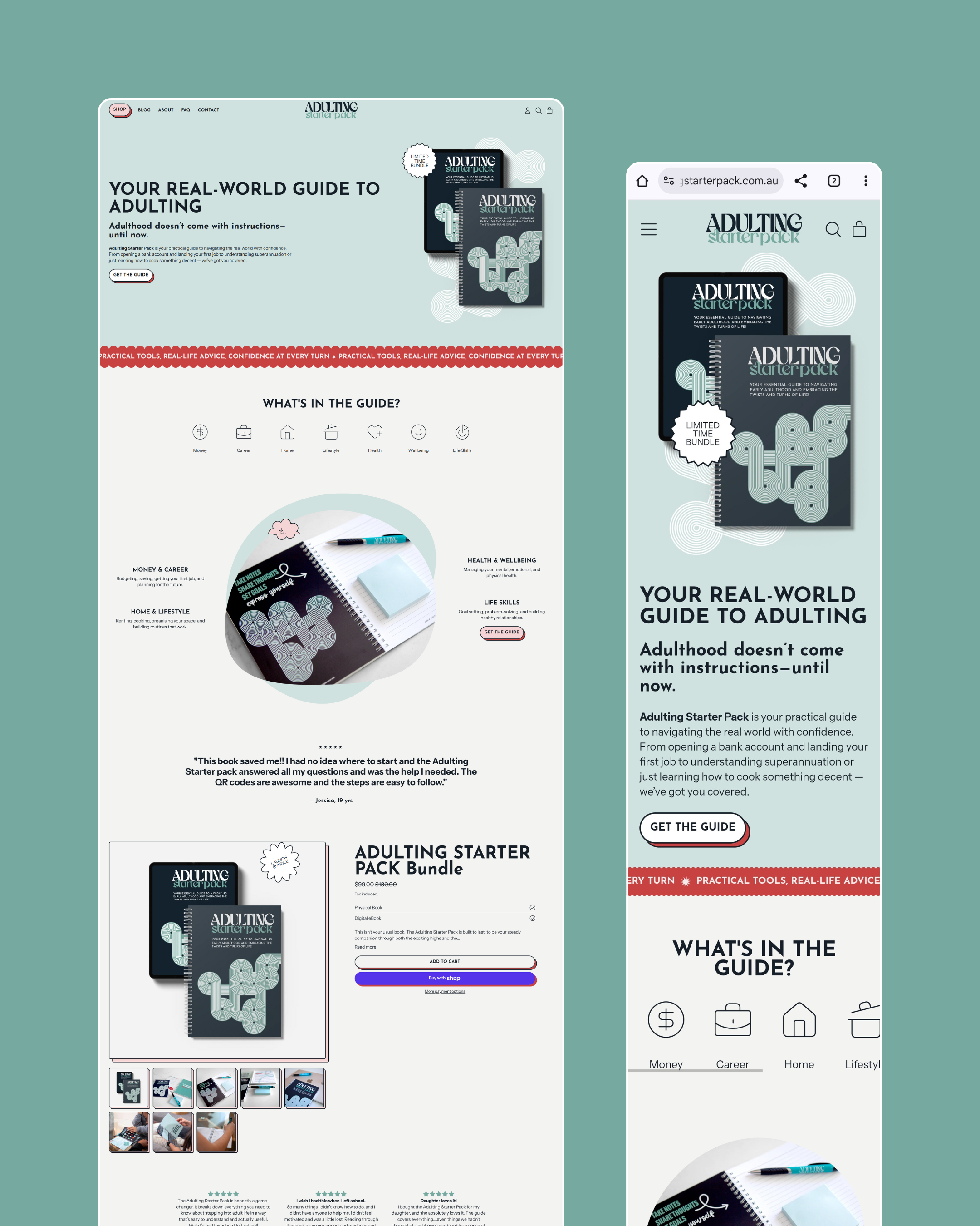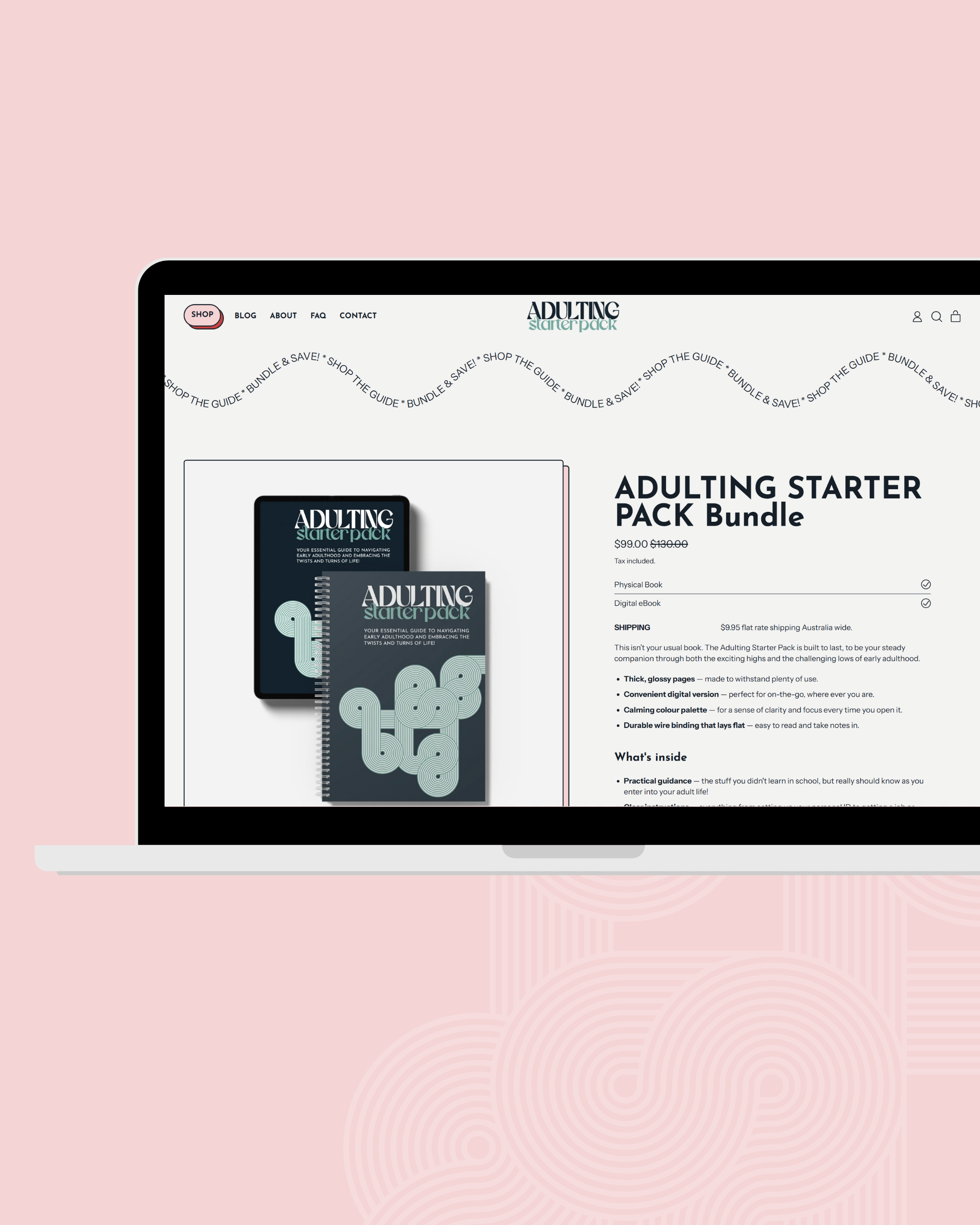 Inspired by the idea of making “adulting” less overwhelming, Adulting Starter Pack needed a fun, functional online store and automated marketing system to support the launch of their educational guide.