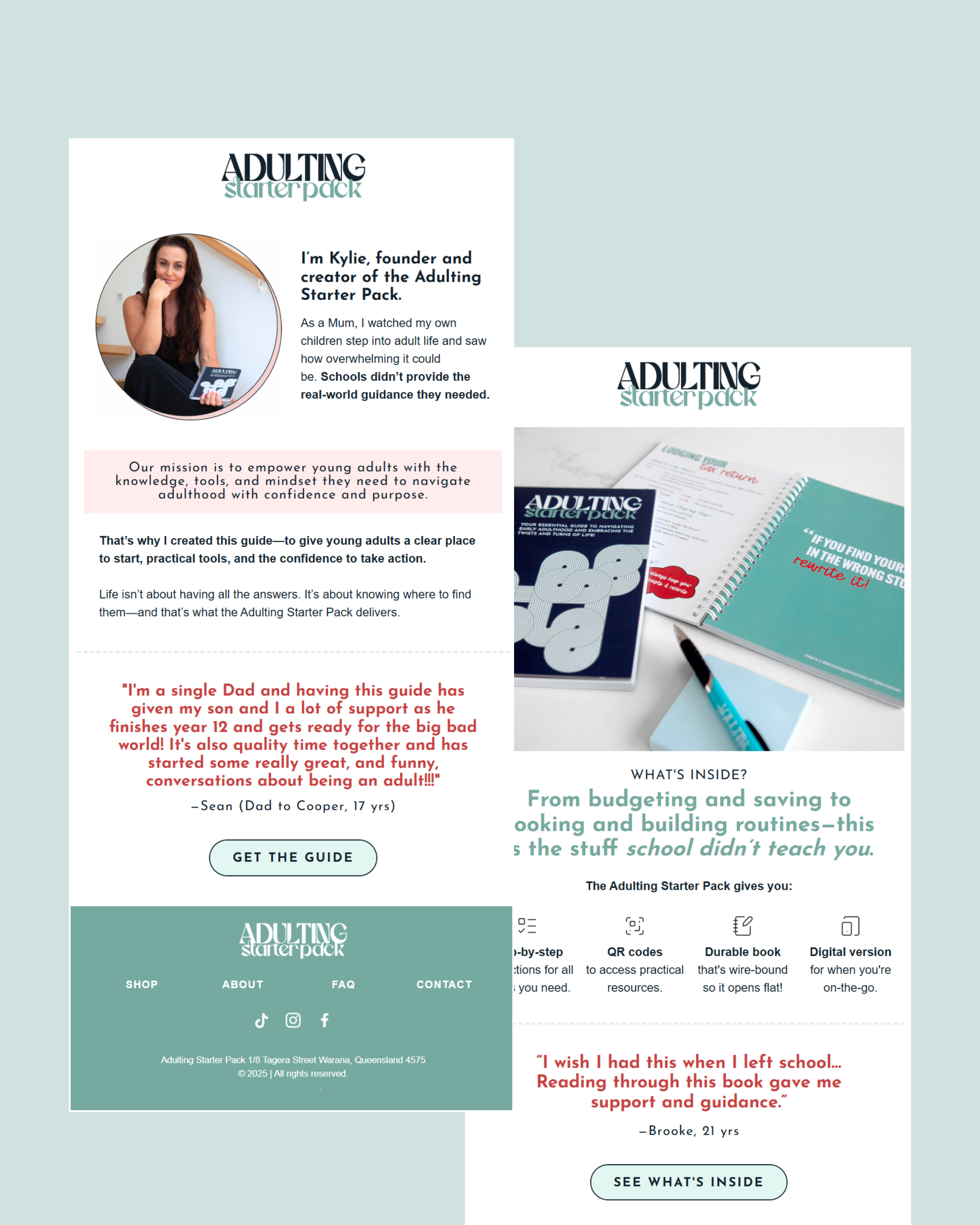 The result: a streamlined launchpad that gives Adulting Starter Pack the tools to sell, grow, and nurture their community from day one.
