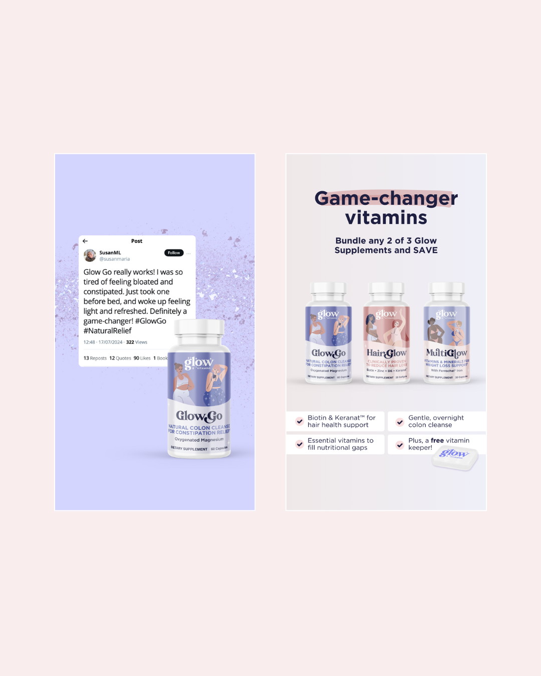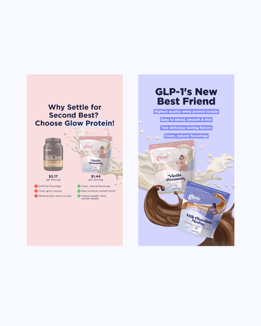 Since completing their branding and packaging, and Shopify site launch, SEVAH has supported Glow Weight Loss with ongoing advertising assets — social content built for clarity, plus landing pages designed to convert without overselling. The priority has been simple: explain the offer fast, educate where it matters, and make the next step obvious.